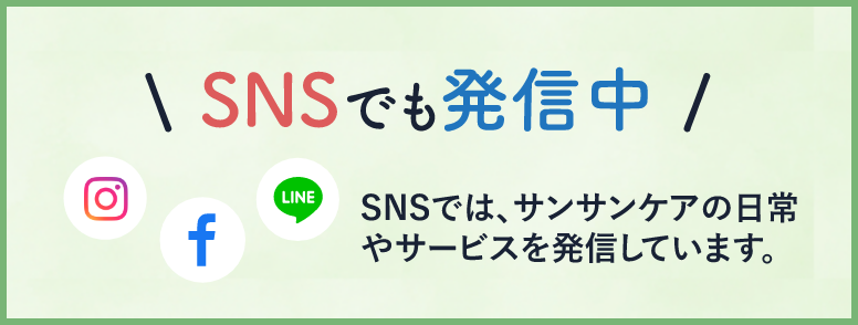 サン・サンケアでは、在宅医療支援や日常生活の補助はもちろん、リハビリや育児支援、心のケアなど、皆様を幅広くサポートしています。